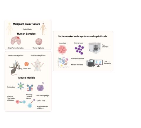 Integration of human samples and tumor explants from malignant brain tumors, with in vivo testing using immunocompetent glioblastoma and brain metastasis mouse models.