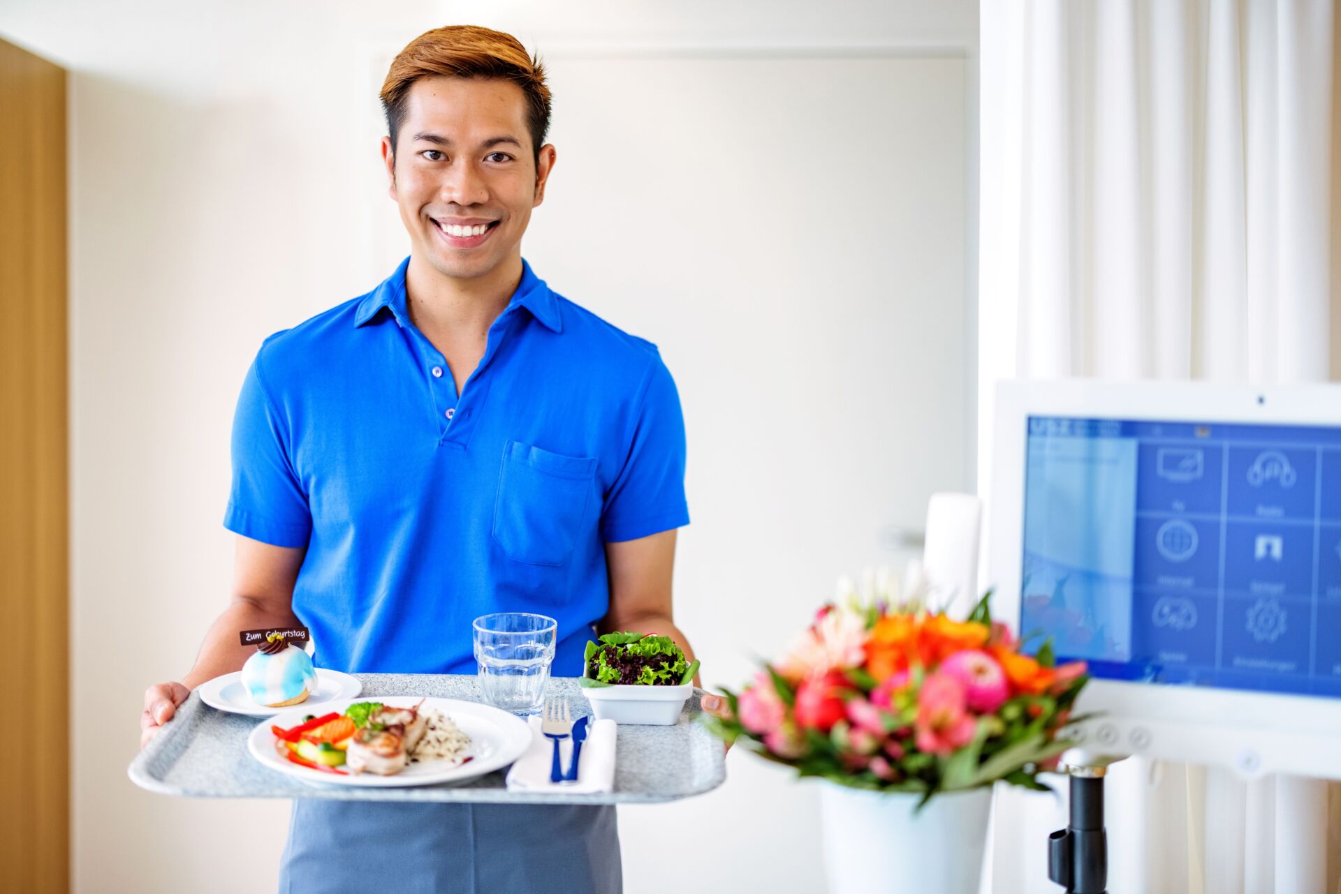Diabetics should preferably choose the Balance menu, which has been specially developed for patients who are not allowed to consume more than a certain amount of carbohydrates (45g – 50g per meal). At the University Hospital we offer kosher meals and all menus can be ordered without pork. Vegetarians and vegans are also catered for, although vegan is considered a special diet and is only available at the express request of our patients.