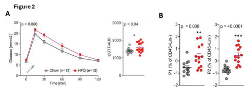 Mit Hilfe von in vivo Mausmodellen und translationaler Studien am Menschen analysieren wir die Veränderungen des angeborenen und adaptiven Immunsystems im Darm im Zusammenhang mit Übergewicht und Diabetes. Darüber hinaus sind wir an den zugrunde liegenden Mechanismen dieser Krankheitsprozesse interessiert und ob die damit verbundenen immunologischen Veränderungen im Darm durch Gewichtsreduktion reversibel sind.