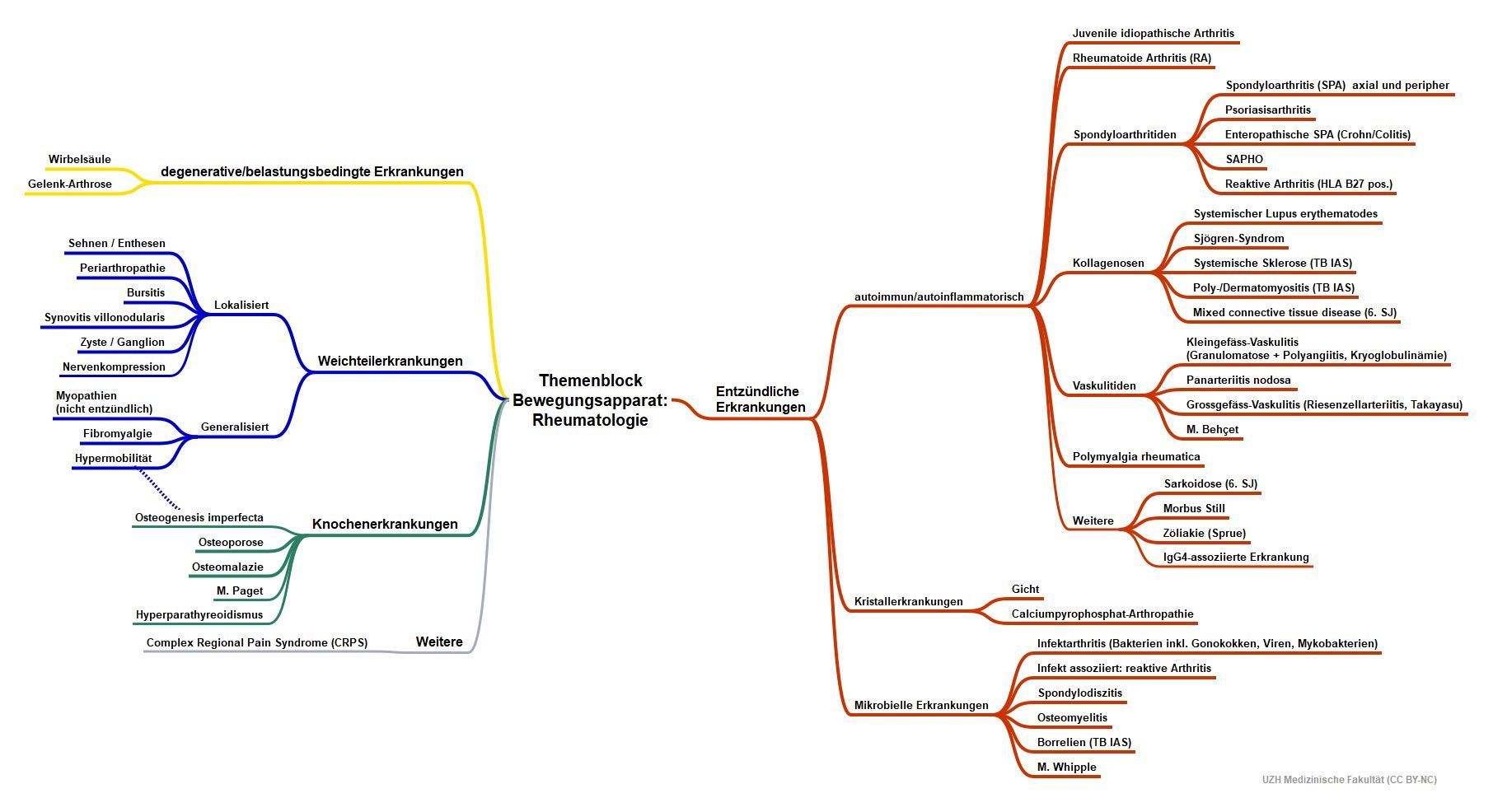 Die Ausbildung beginnt in der Regel im Bereich der stationären Rheumatologie (24 Betten am USZ-Standort Campus) um die klinische Untersuchungstechniken und die wichtigsten Gelenkspunktionen zu erlernen und wird dann hauptsächlich in der Poliklinik am USZ-Standort Flughafen (Circle) weitergeführt, wo 8 Untersuchungszimmer zur Verfügung stehen. In den ambulanten Sprechstunden werden gemischt sämtliche Erkrankungen unter Supervision der Kaderärzteschaft gesehen.