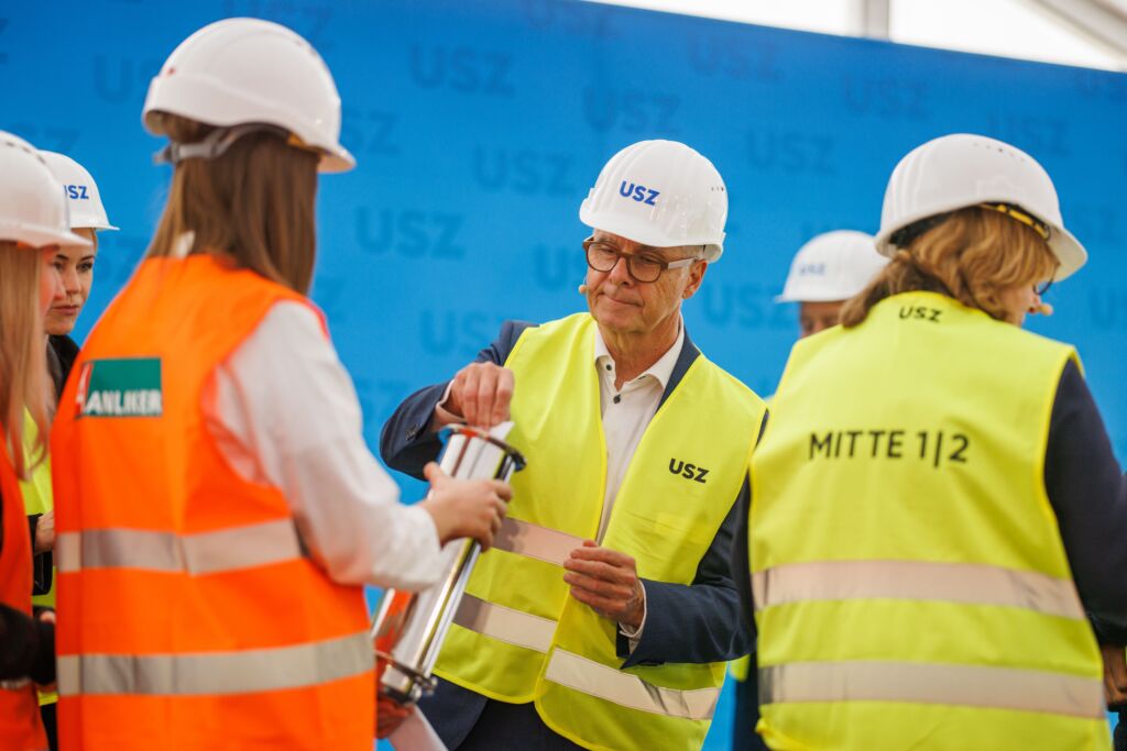 Mit einer feierlichen Grundsteinlegung des Neubaus MITTE1|2 hat das Universitätsspital Zürich (USZ) am Montagnachmittag (17. November 2025) einen wichtigen Schritt in die Zukunft gemacht. Rund 200 Gäste aus Politik, Wissenschaft und Gesundheitswesen, darunter Regierungsrätin Natalie Rickli, Regierungsrat Ernst Stocker, ABG-Präsidentin Raffaela Fehr und KSSG-Präsident Andreas Daurù nahmen am Festakt teil. Mit dem Campus MITTE1|2 investiert das USZ in die universitäre Spitzenmedizin: So werden die Gebäude unter anderem Platz bieten für ein neues Notfallzentrum, für über 300 Betten und 23 Operationssäle.