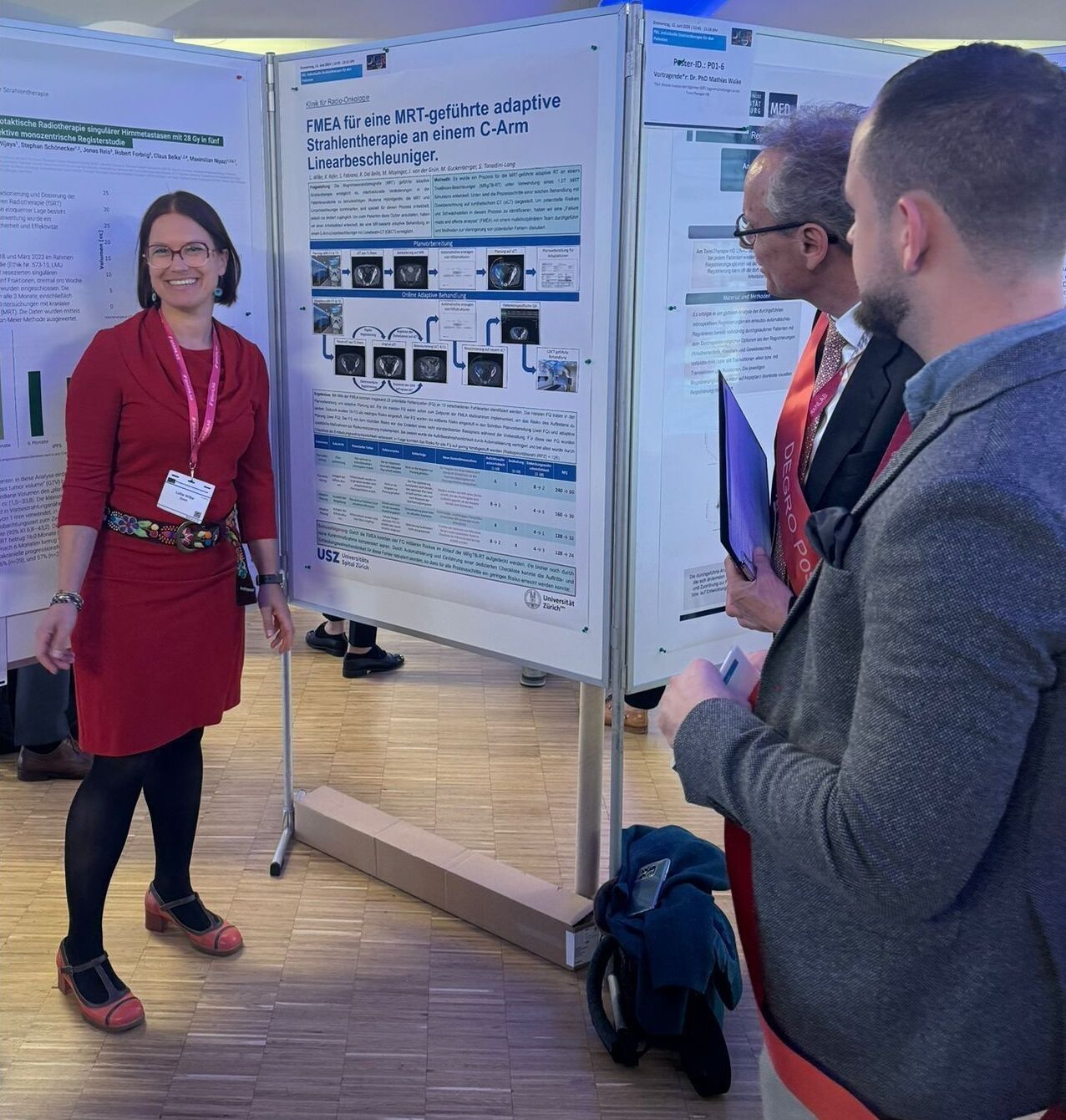 Der Posterpreis der Firma Brainlab AG wurde an Frau Dr. Lotte Wilke für ihr Poster mit dem Titel «FMEA für eine MRT-geführte adaptive Strahlentherapie an einem C-Arm Linearbeschleuniger» verliehen. Erarbeitet wurde dieses Thema mit einem interdisziplinären Team aus Medizinphysikerinnen und -physikern, Fachexpertinnen und Fachexperten Radiologie und Radioonkologinnen und Radioonkologen der Klinik für Radio-Onkologie. Die MR gestützte adaptive Radiotherapie ist eine Technik, die am USZ zur präzisen Bestrahlung von Tumoren im Becken und Abdomen eingesetzt wird. Die Arbeit von Dr. Wilke zeigt eine Alternative zum MR-Beschleuniger, indem die überlegene Bildqualität des 1.5-Tesla-MR-Scanners im Vergleich zum 0.35-Tesla-Gerät des MR-Beschleunigers genutzt wird.